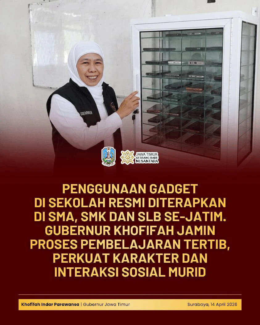 Kebijakan tersebut mulai diterapkan sejak Senin, 13 April 2026. Gubernur Jawa Timur, Khofifah Indar Parawansa, menegaskan bahwa pengaturan penggunaan gadget diperlukan guna memastikan proses pembelajaran berjalan aman, sehat, dan berorientasi pada penguatan karakter peserta didik.